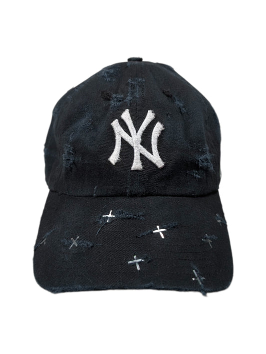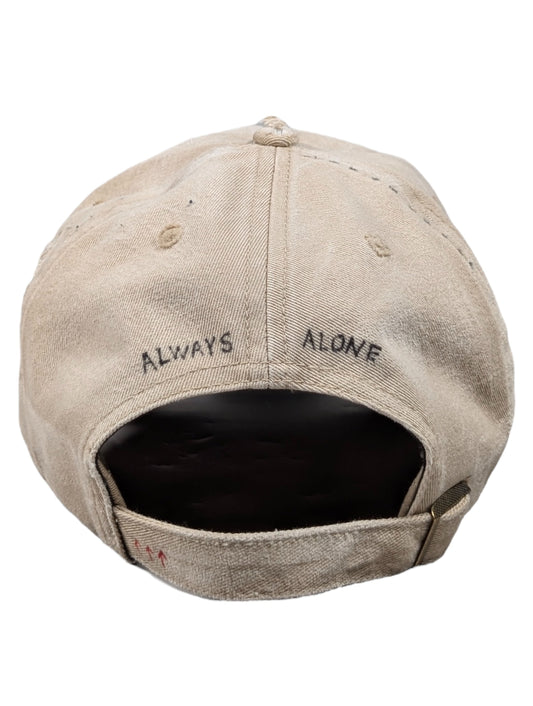 Hand Drawn Repaired Khaki Baseball Cap Hat #99