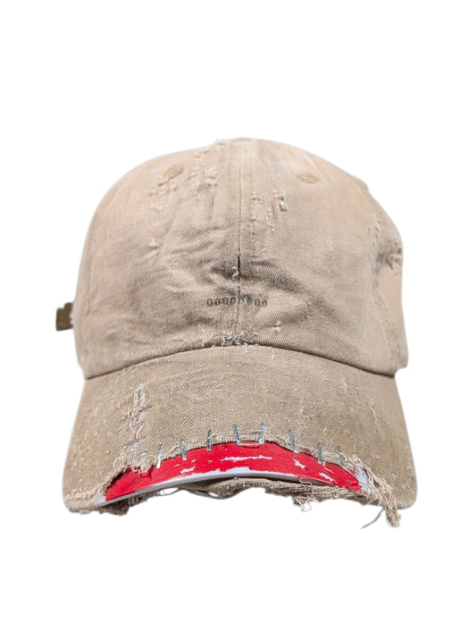 Hand Drawn Repaired Khaki Baseball Cap Hat #99