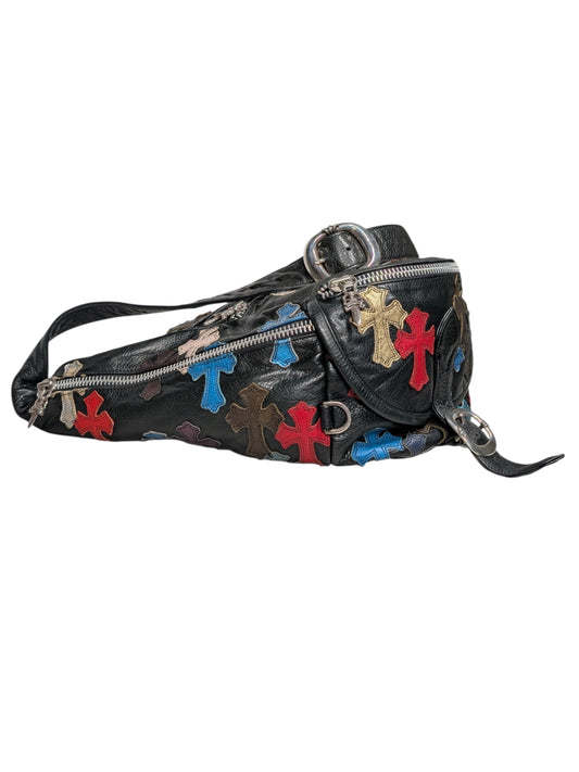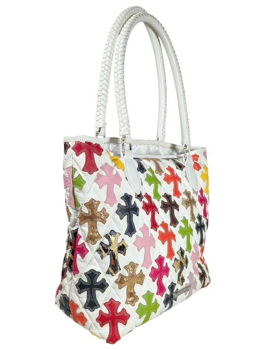 Quilted Leather Multicolor Cross Patch FS Tote Bag White