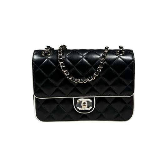 SS25 Flap Bag – Black & White Lambskin w/ Gold Hardware