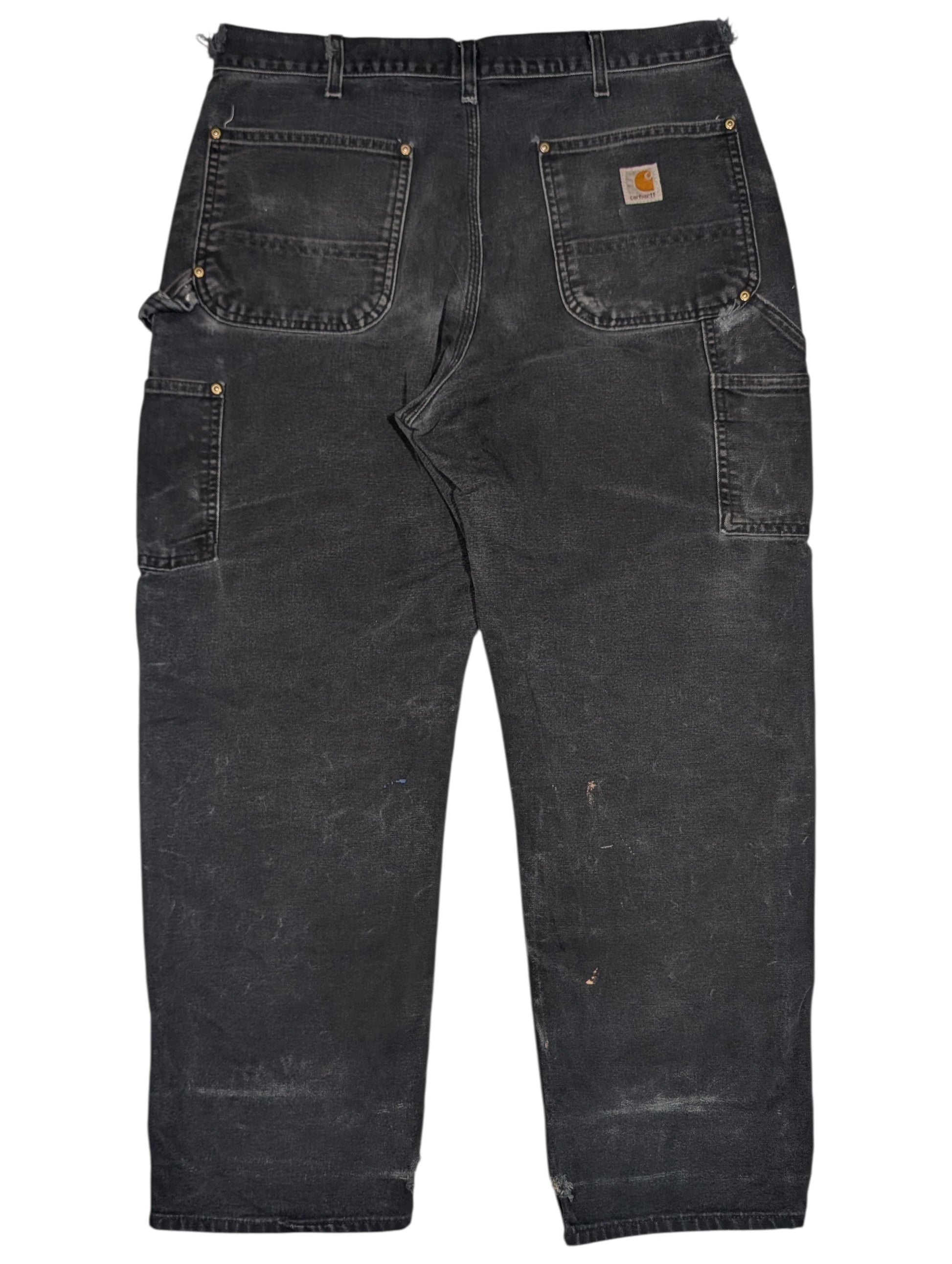 Vintage 1990s Carhartt double knee carpenter pants in faded black canvas. All of our pieces are handpicked with major attention to detail and care, Faded, Vintage, and distressed pair with ripts, paint, and more.