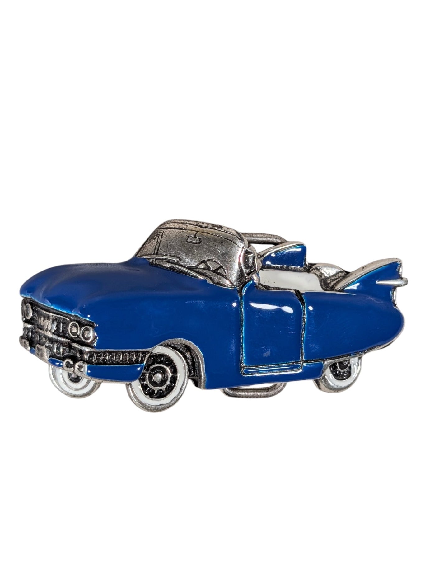 Hand-painted AMAL belt buckle crafted in Italy blue convertible car motif. Designed to fit interchangeable belt straps, including Chrome Hearts-compatible styles.