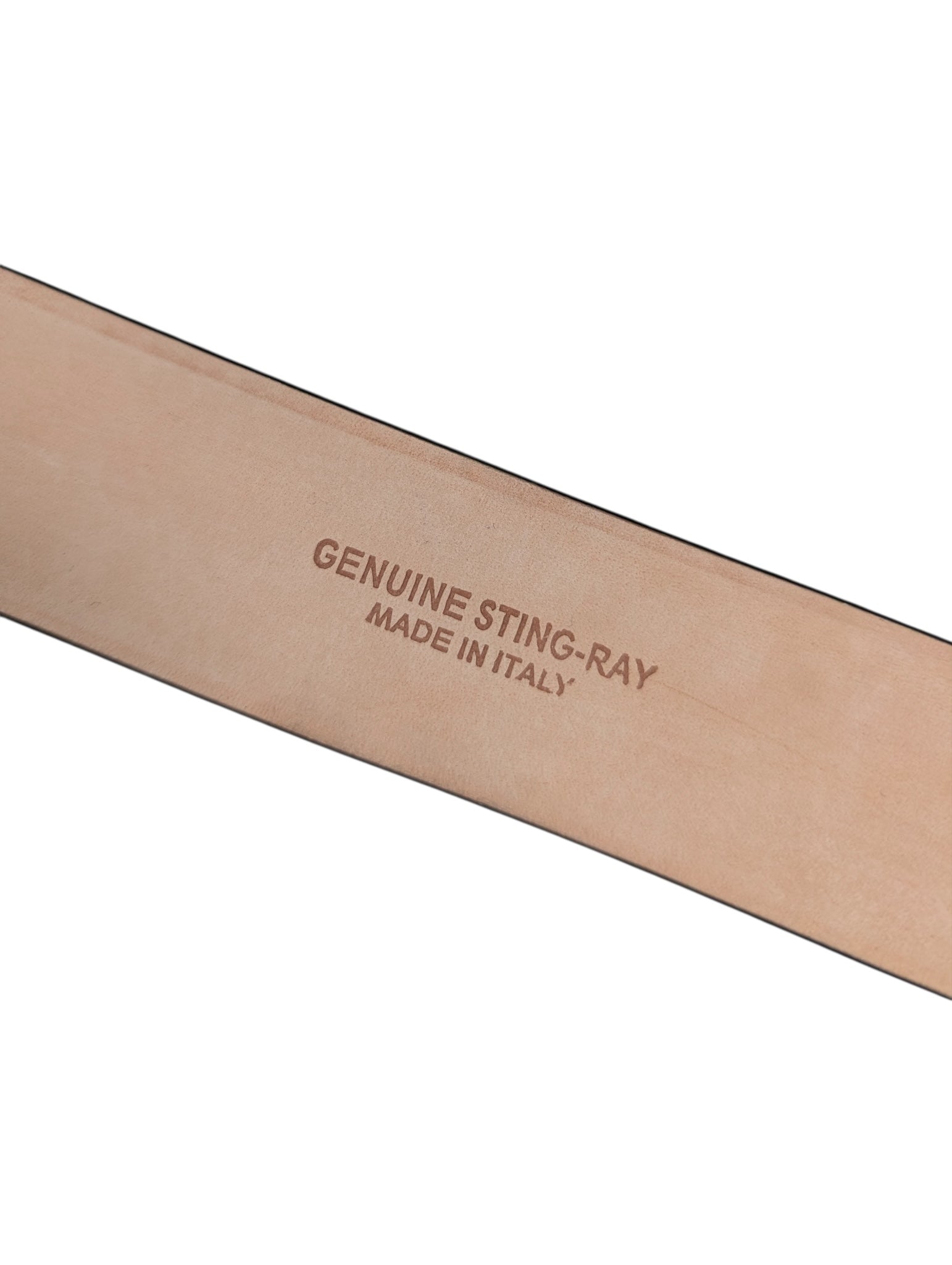 Exotic AMAL Stingray Leather belt in Charcoal Grey Caviar with Chrome Hearts Rolling Stones Lip & Tongue Buckle in .925 Silver. Compatible with Chrome Hearts and AMAL interchangeable buckle systems. Handmade in Italy.