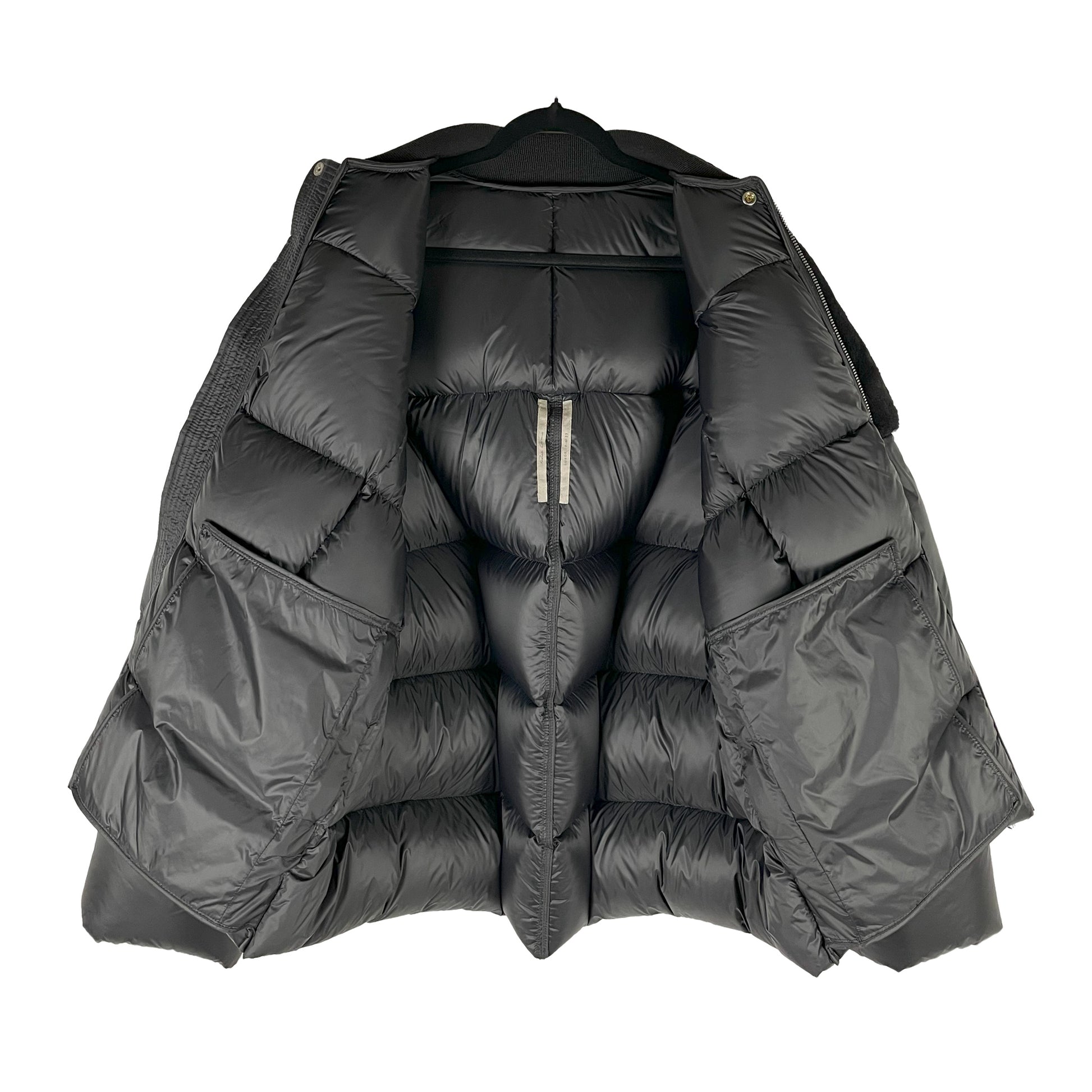 "THIS FLIGHT JKT IS HIP LENGTH WITH LONG SLEEVES. IT IS A HEAVYWEIGHT DUVET QUILTED WITH HORIZONTAL AND DIAGONAL STITCHING LINES. IT FEATURES A CENTRE FRONT ZIPPER WITH PLACKET AND TOP SNAP, TWO SIDE POCKETS WITH SNAPS AND A RIBBED COLLAR AND CUFFS. IT HAS A SIGNATURE COTTON WEBBING STRAP WITH RIVET DETAIL ON THE BACK YOKE.