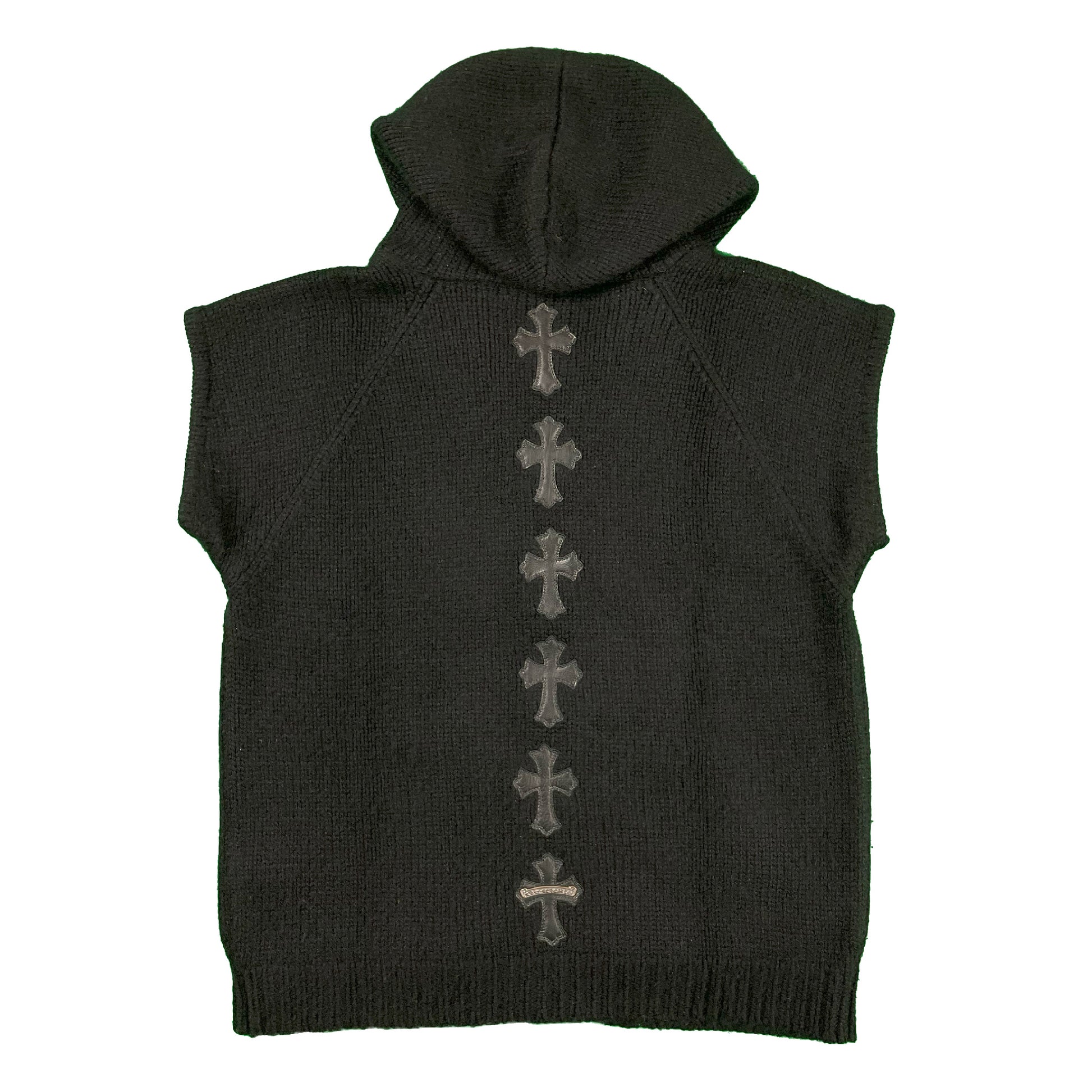 Sleeveless Cross Patch Cashmere Hoodie Vest