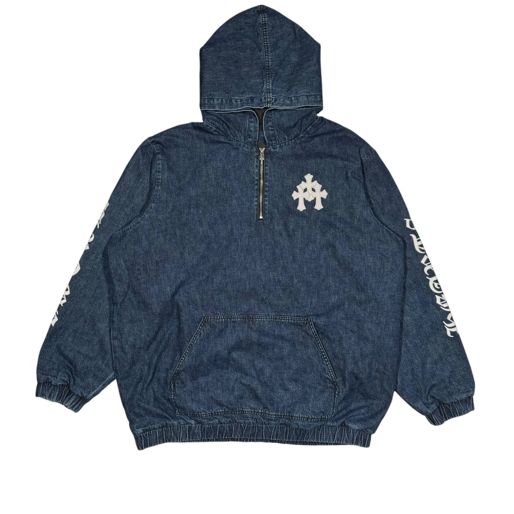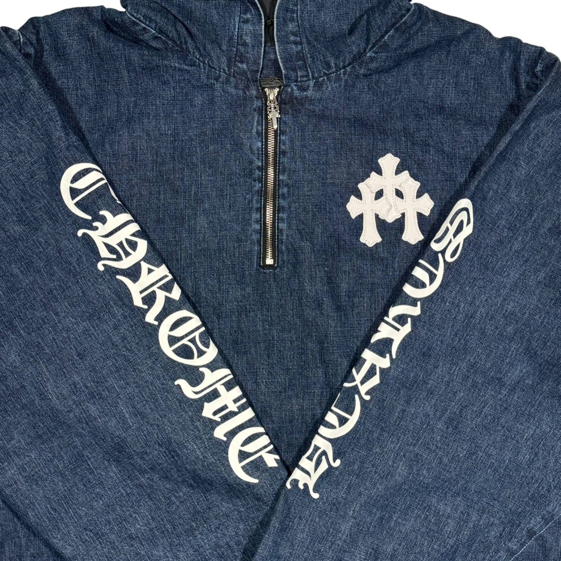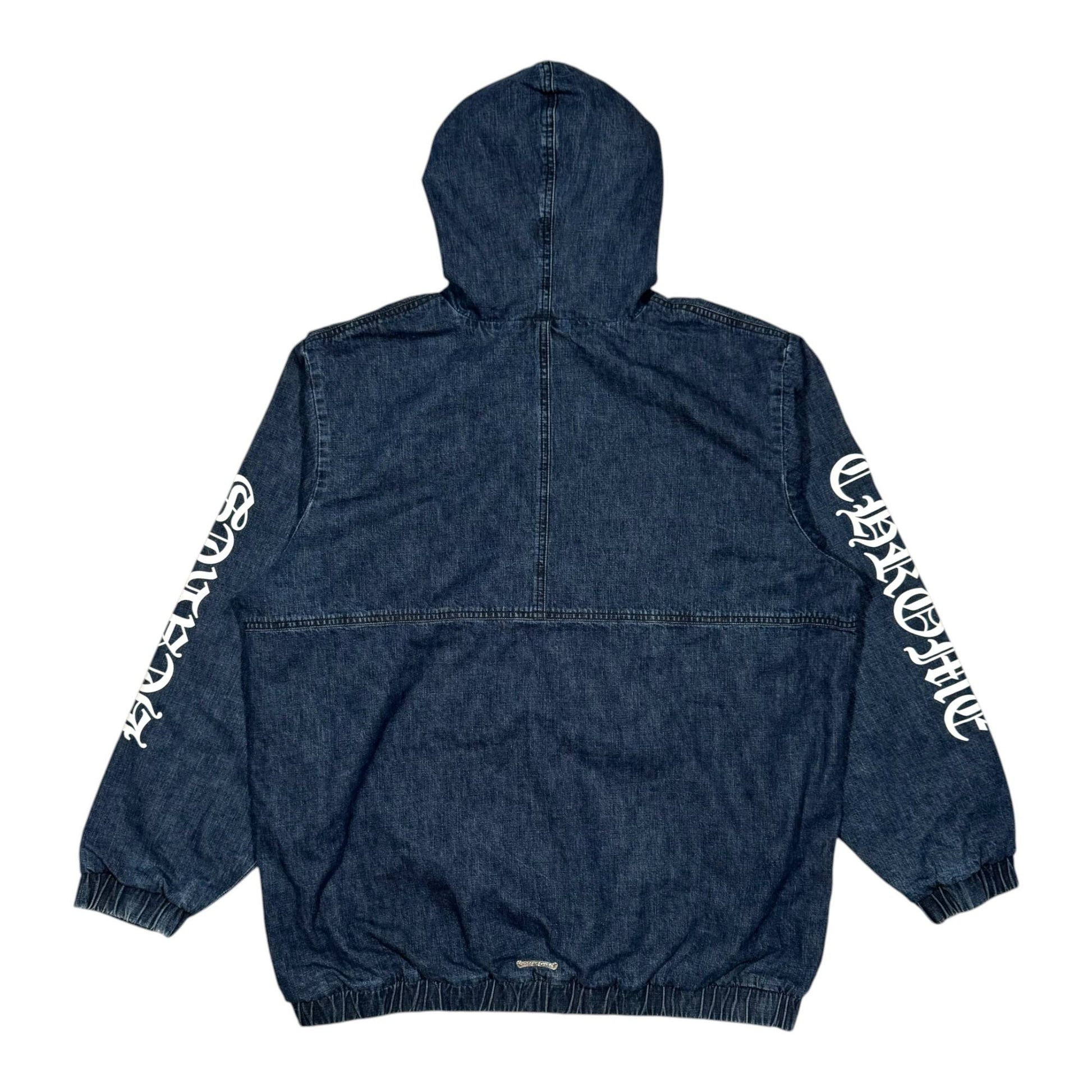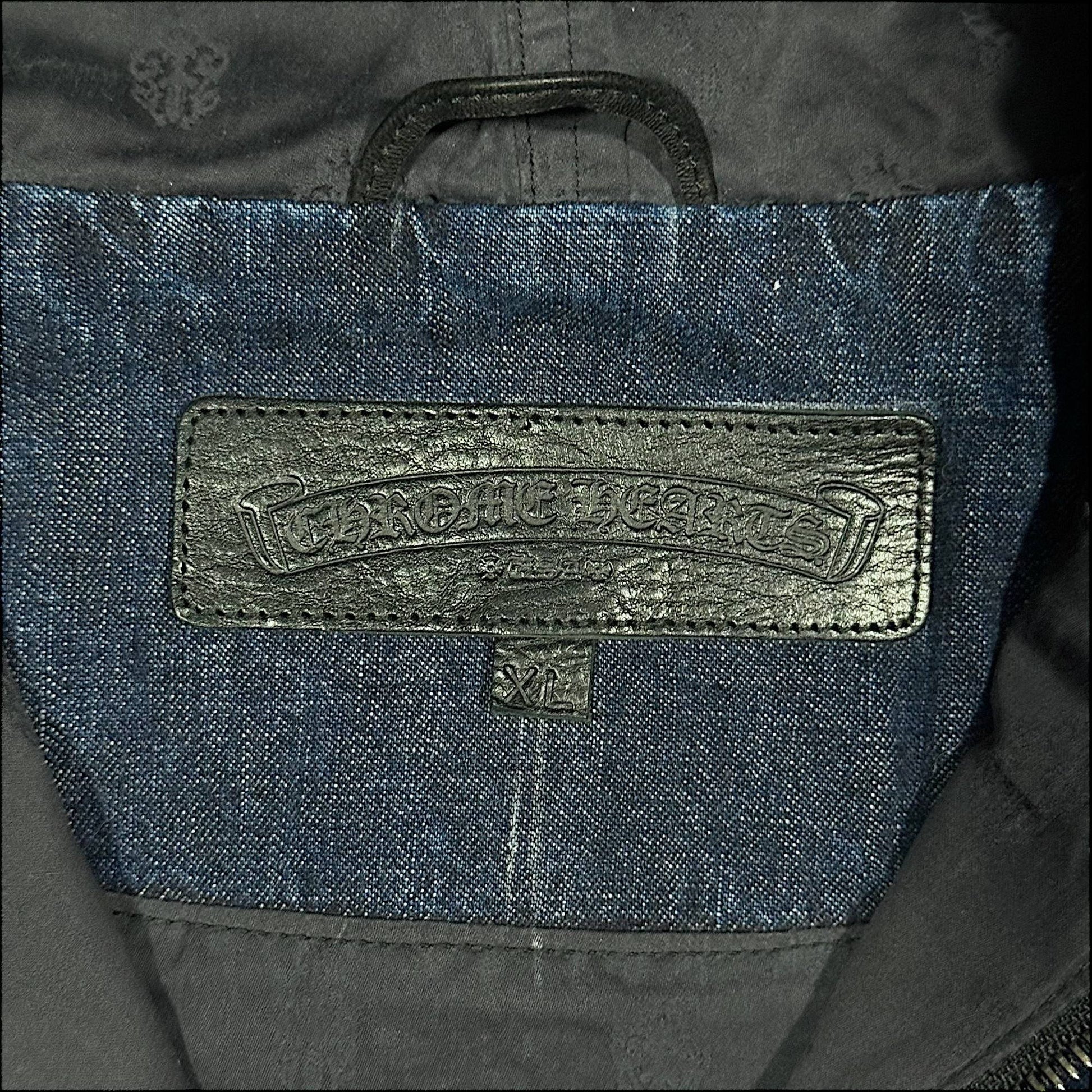 Chrome Hearts Garage Wash Denim Shirt 'Ruckus' - 3 White Cemetery Cross Patches - White Print 'Chrome Hearts' Sleeves