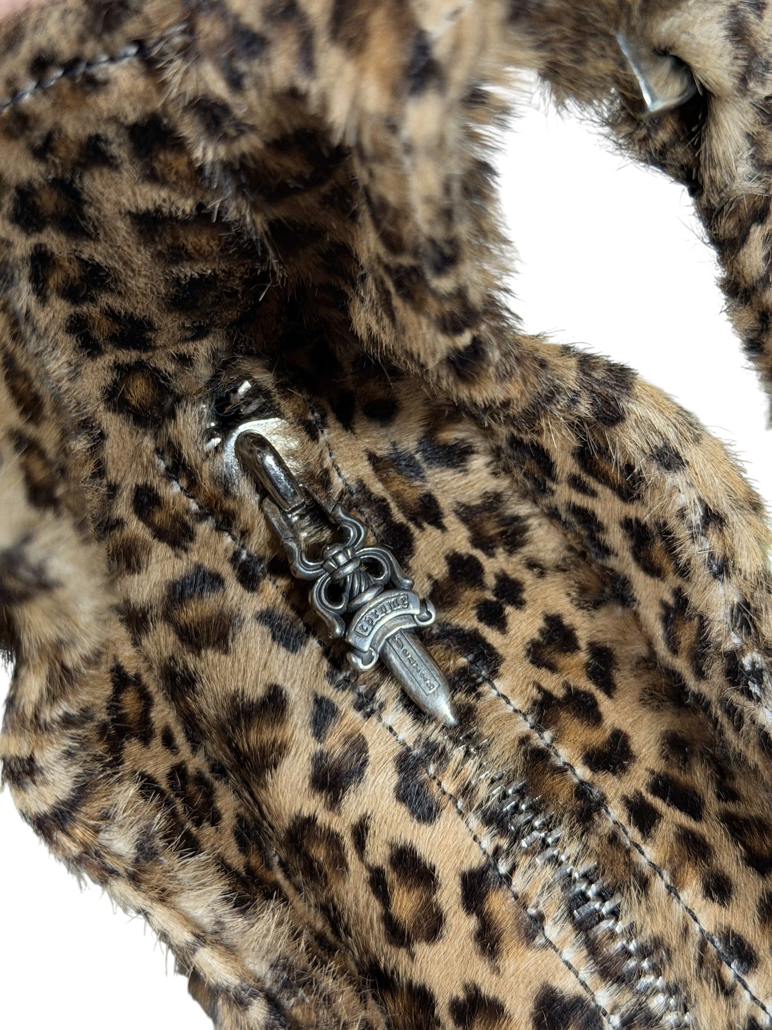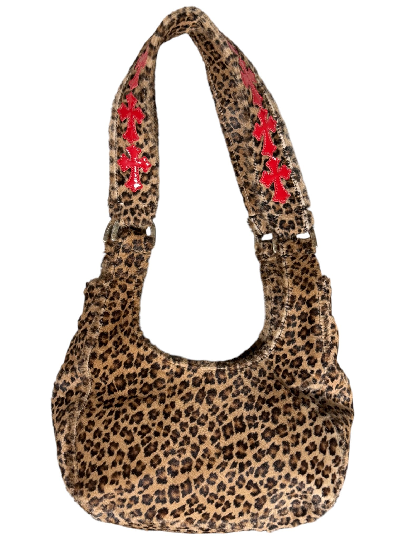DETAILS: Chrome Hearts 'Nip & Tuck' handbag. An ultra-rare St Barths exclusive constructed from premium cheetah print calf hair. This bag silhouette features vibrant red patent leather cross patches with a chic cheetah print across 2 straps and is finished with signature .925 Silver CH hardware and dagger zipper. Silk lined interior with dagger motif. Statement piece in a perfect & trendy shape and size. Brand new condition with dust bag.
