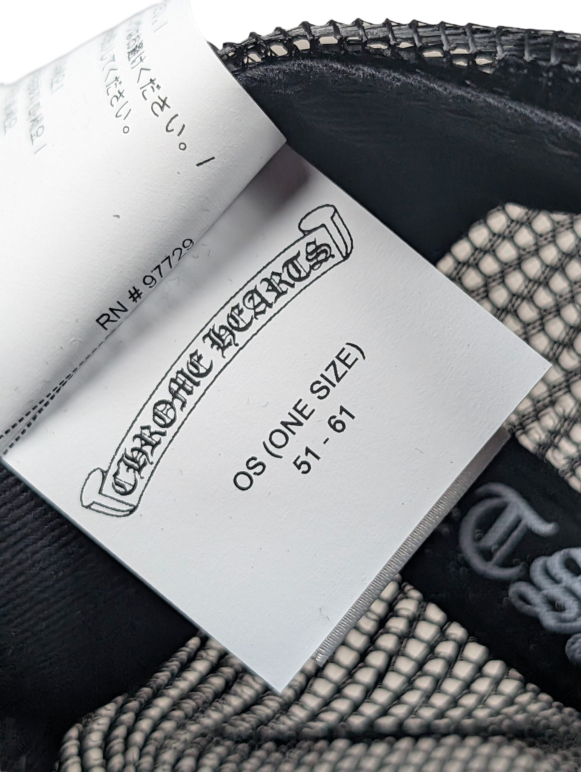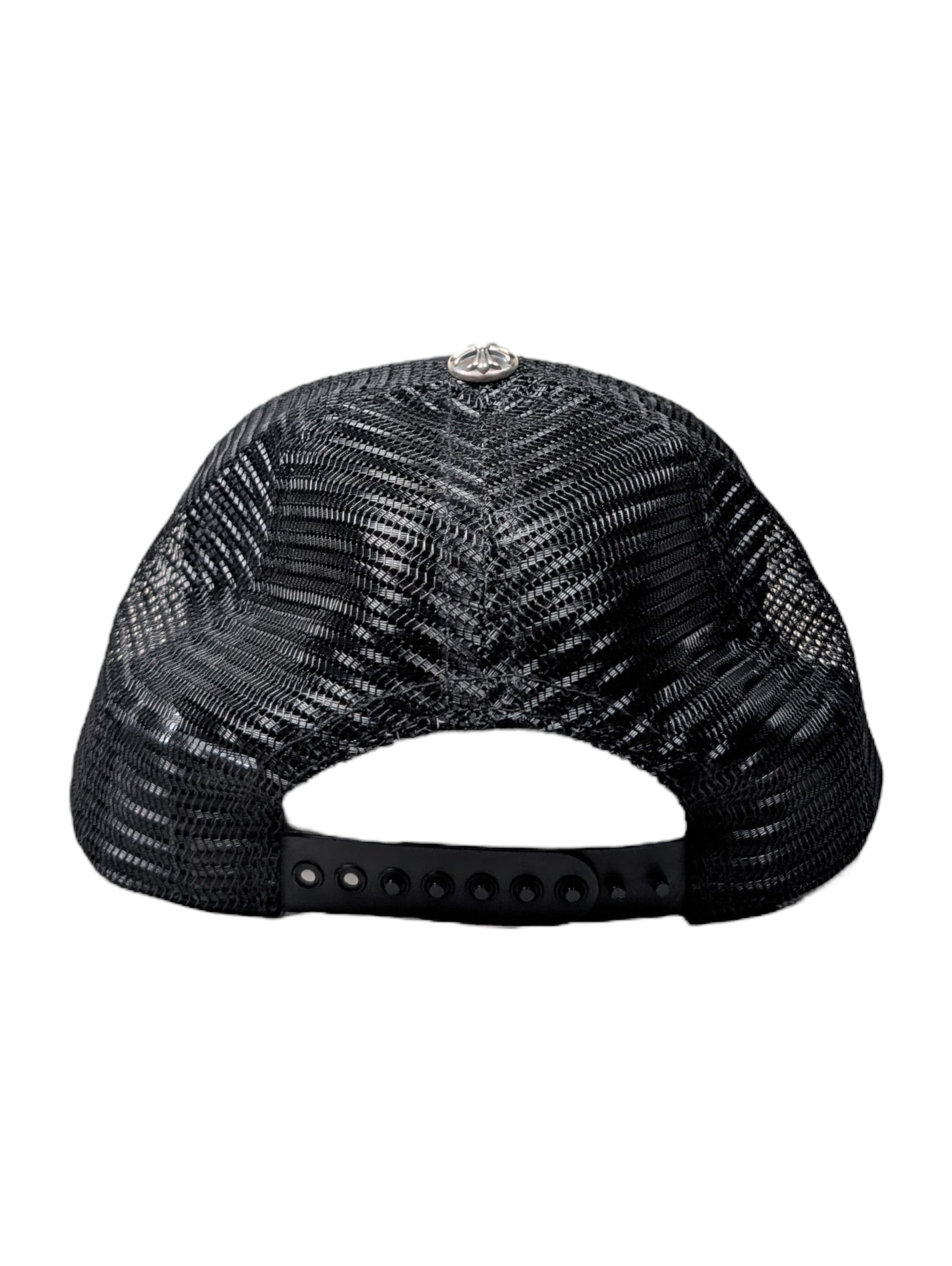 DETAILS: Authentic Chrome Hearts Trucker Hat featuring the classic "FUCK" Hollywood, USA patch in black and white embroidery. Mesh back with adjustable snap closure and .925 sterling silver Cross Ball top button. Great condition as shown in pictures, almost like new.