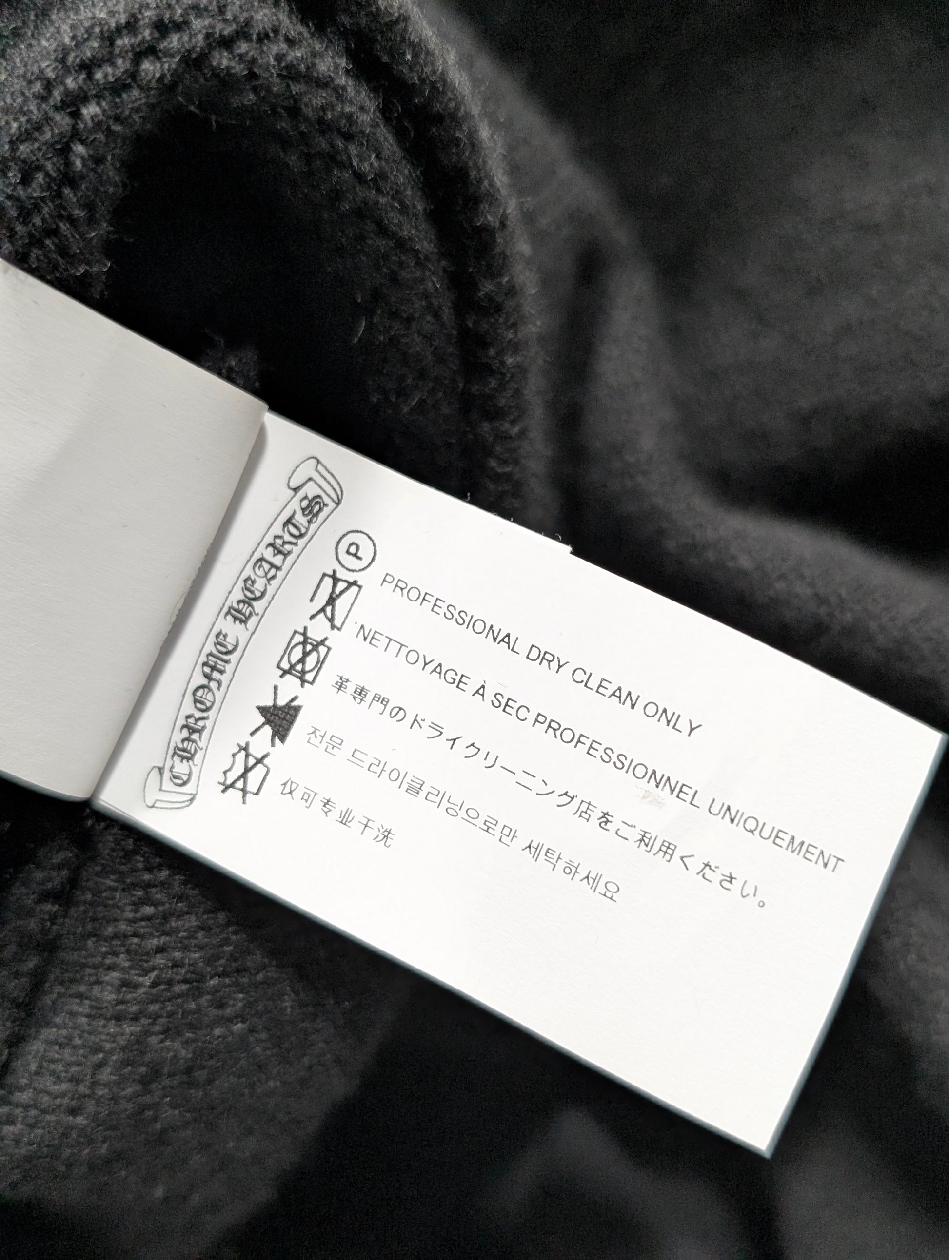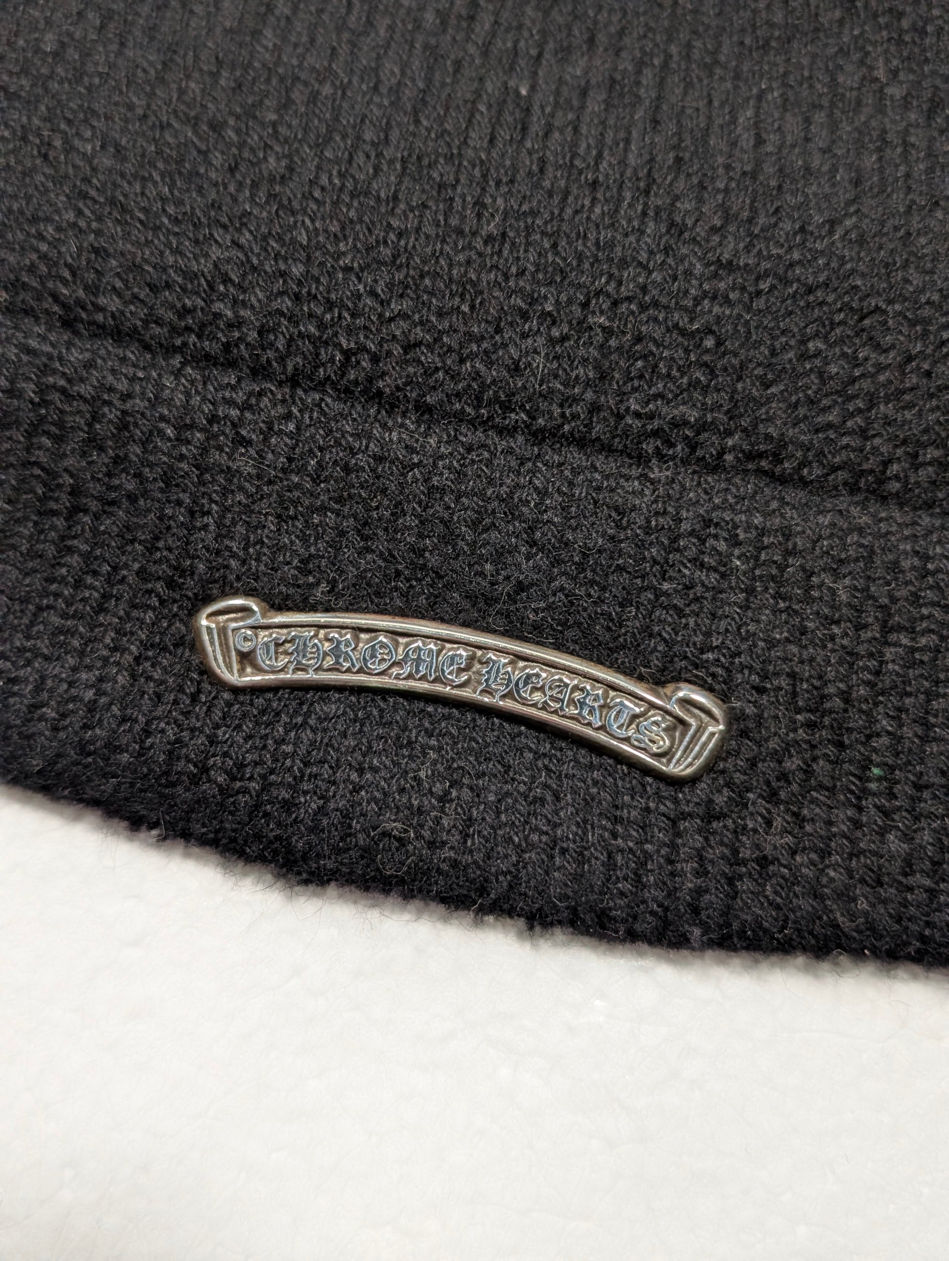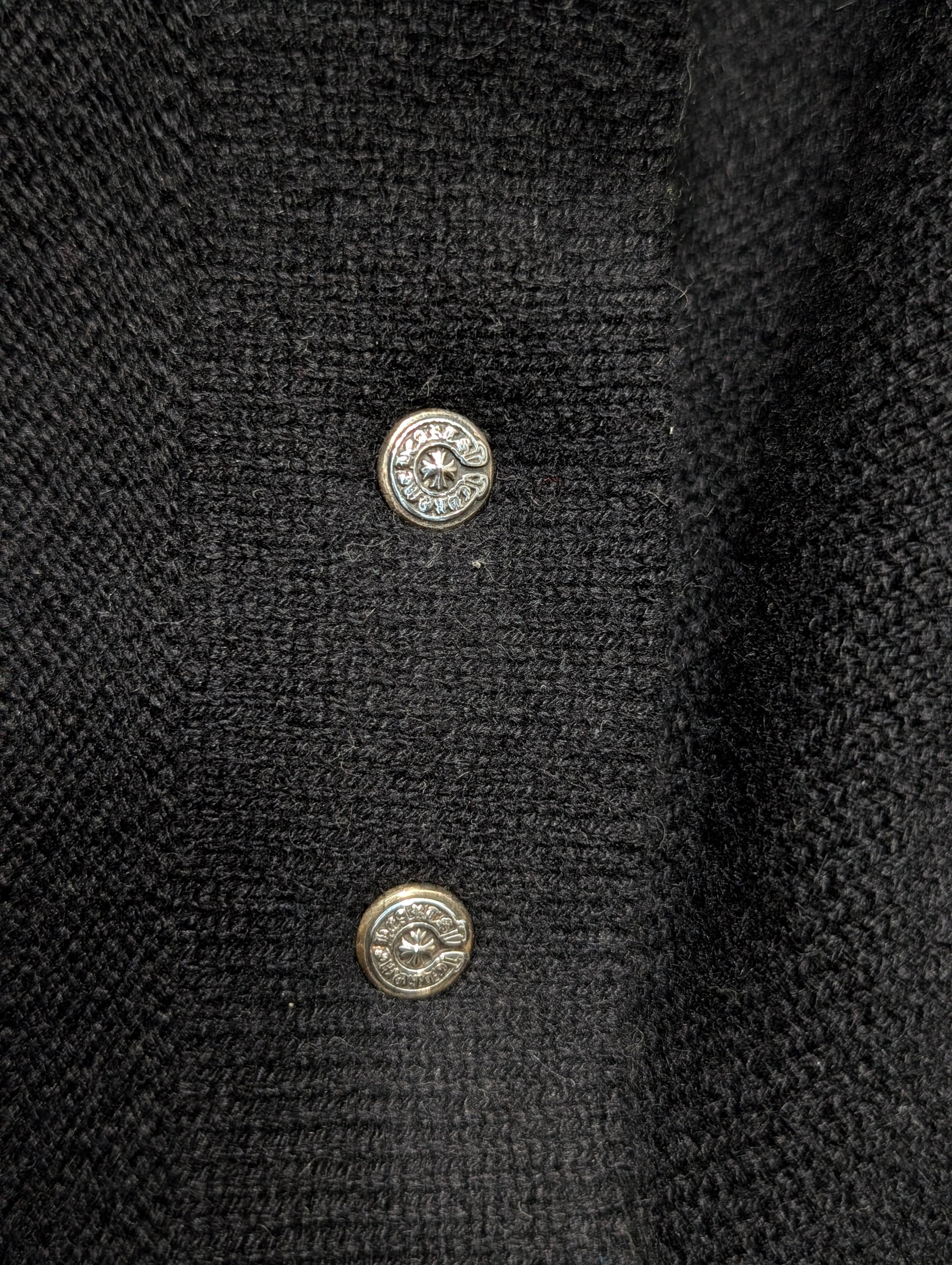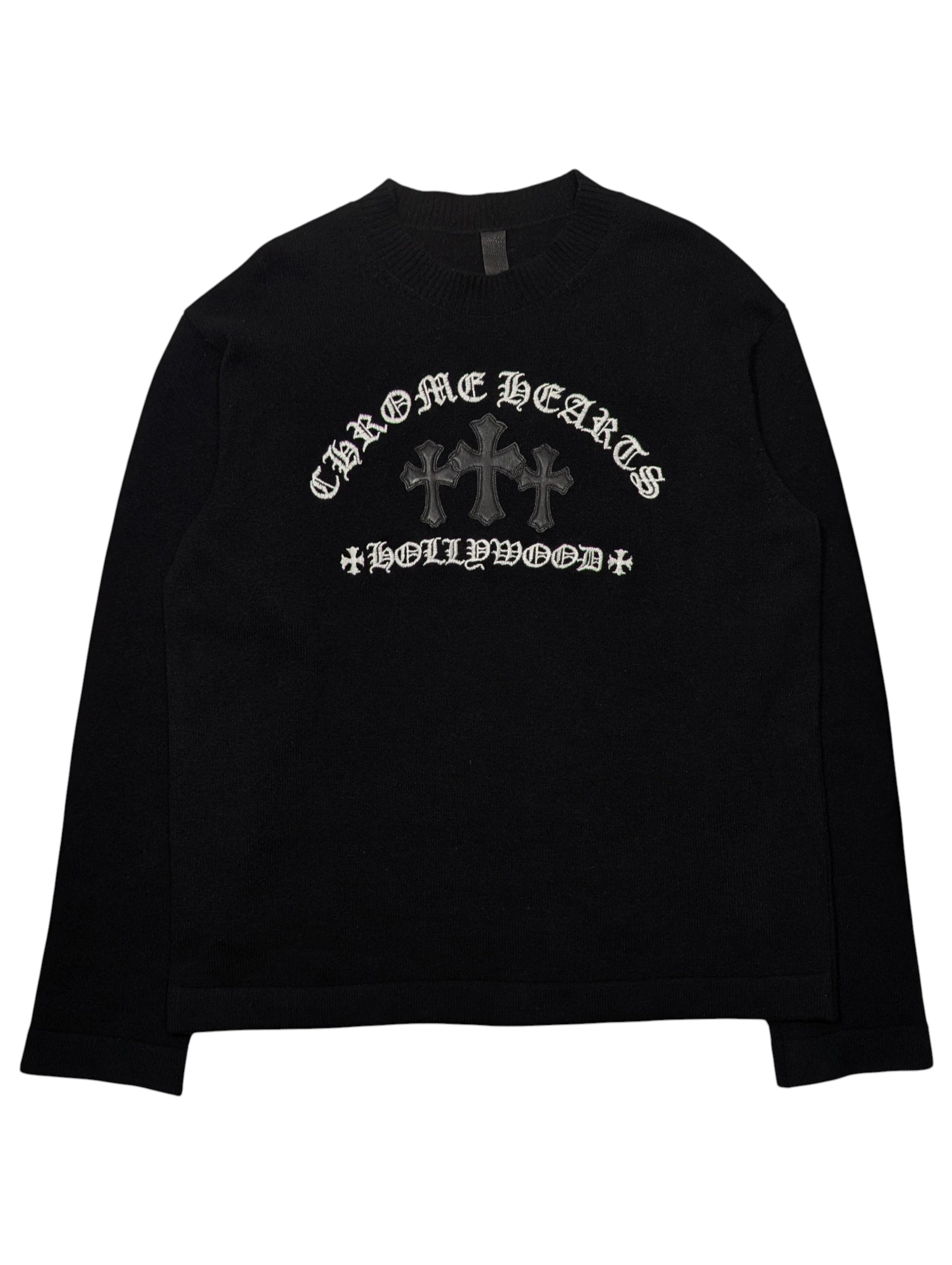 Chrome Hearts Cashmere Sweater with Triple Cross Patch in Black Leather, Chrome Hearts Hollywood Embroidery and .925 Silver Scroll Logo Plaque.