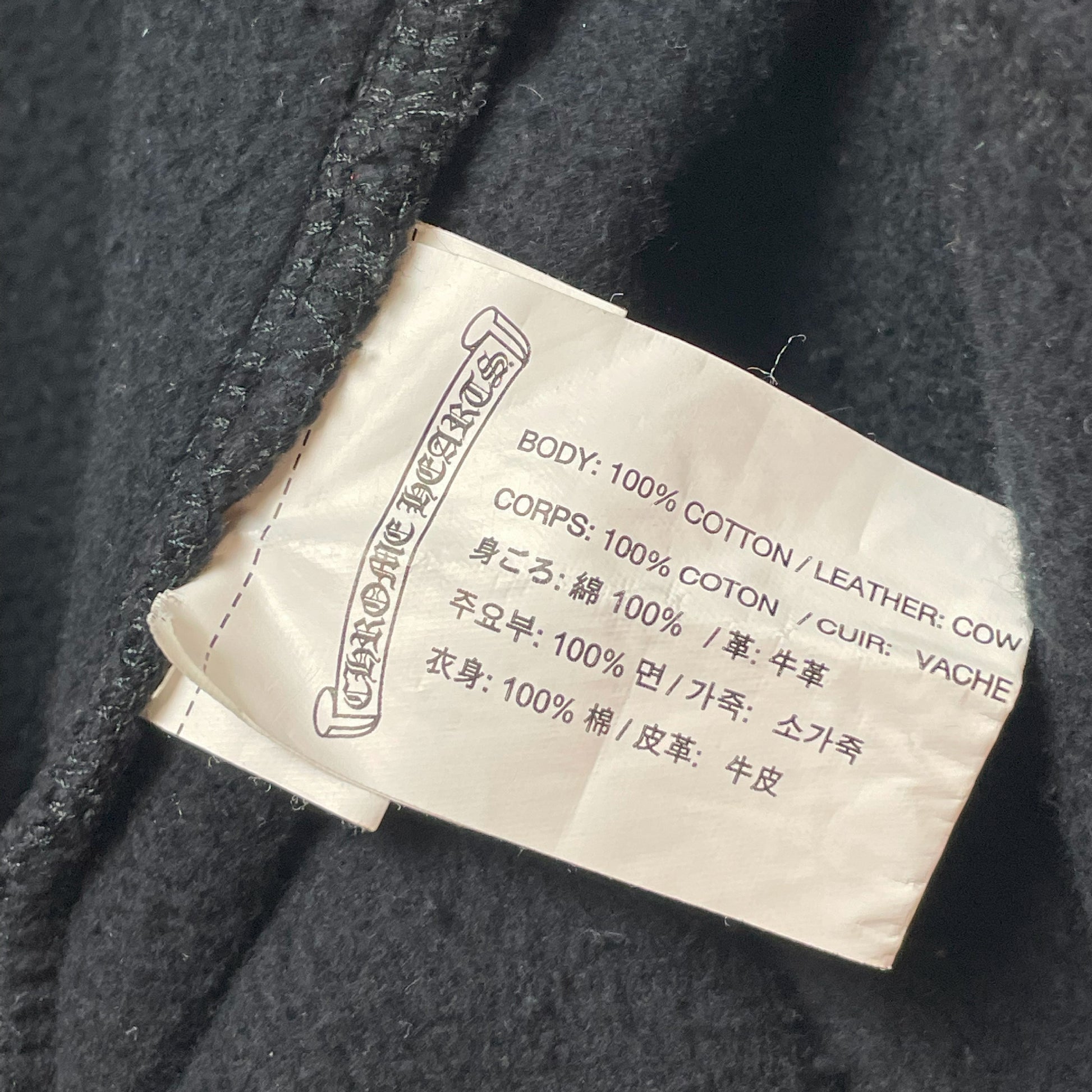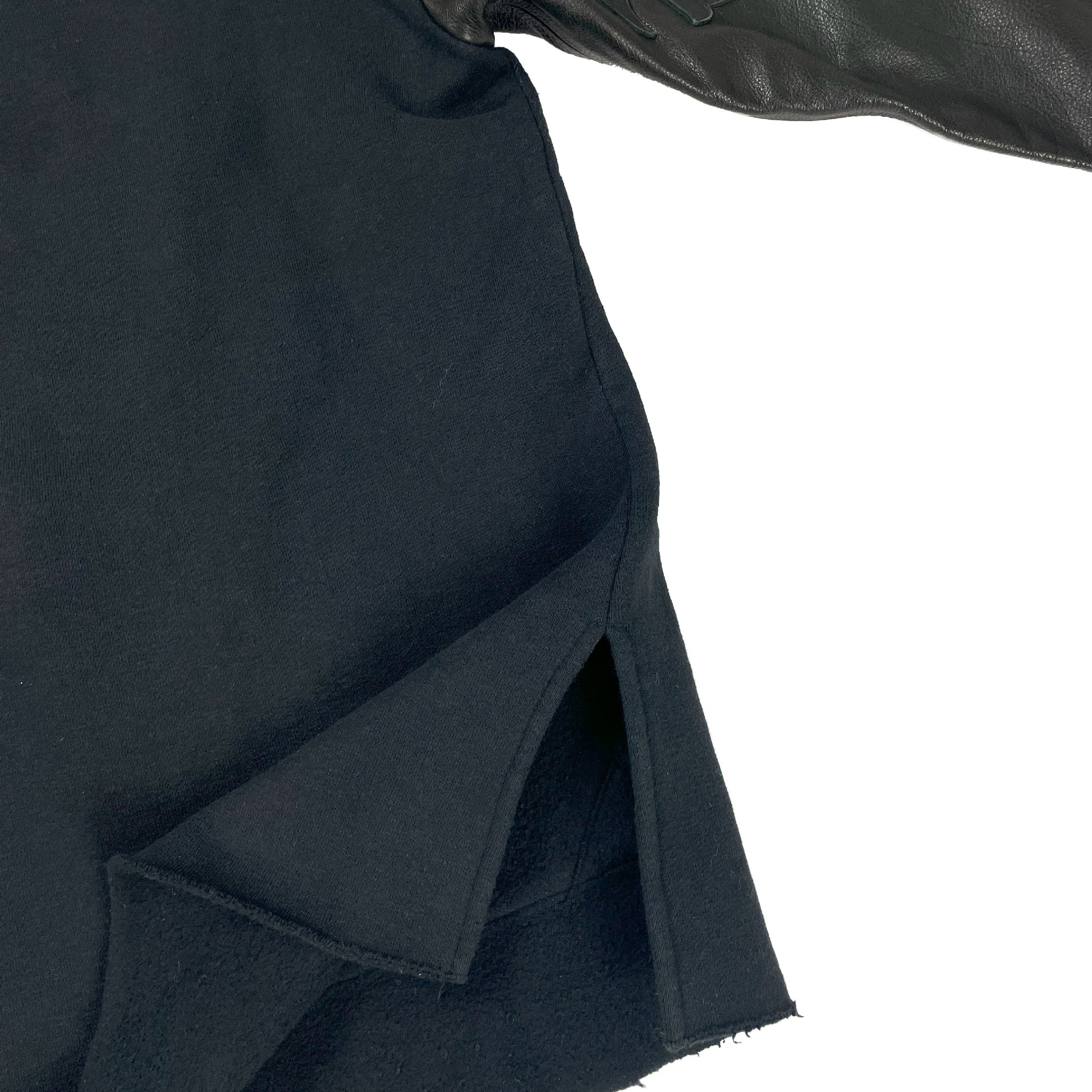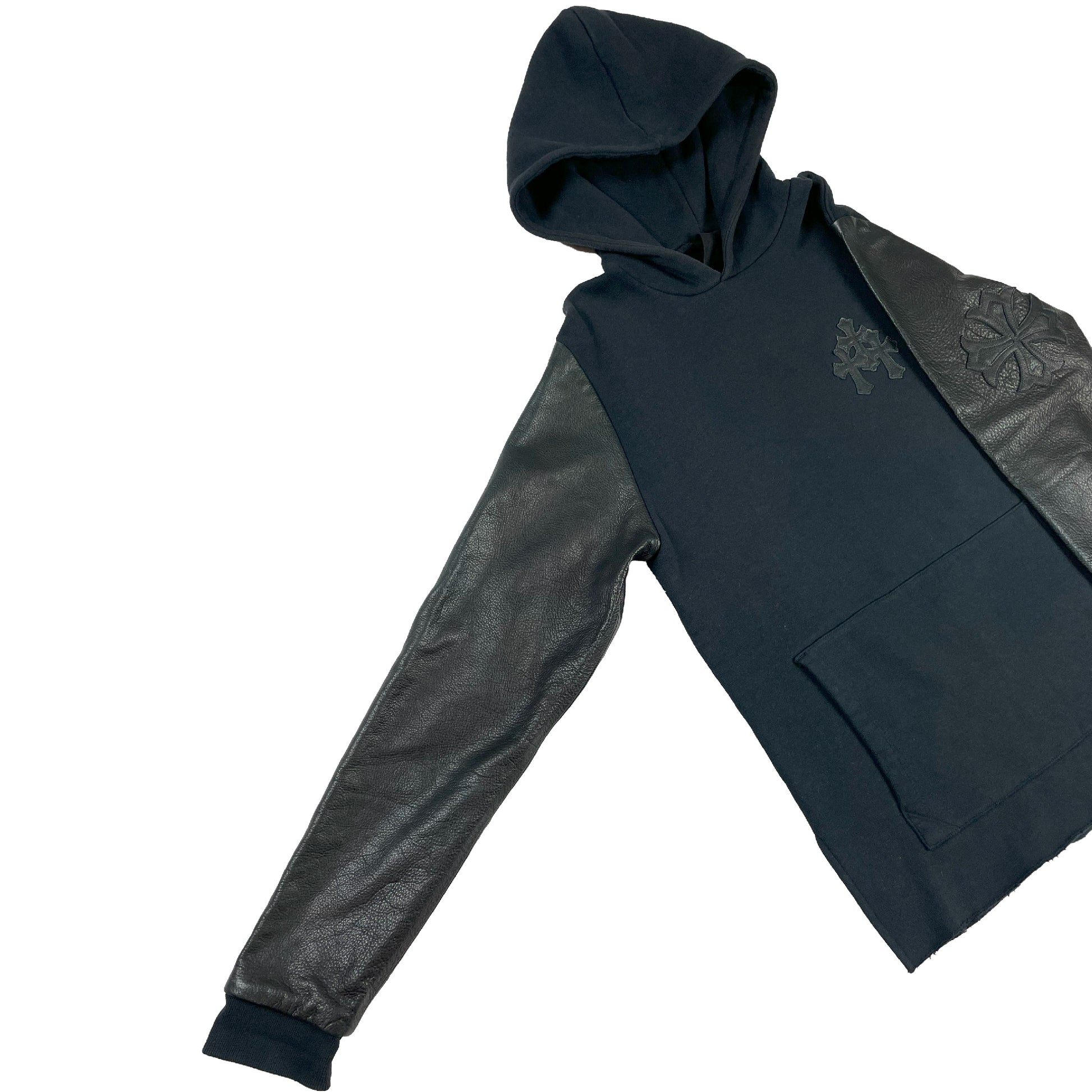 Black Leather Sleeve Cross Patch / Plus Patch Slit Hoodie
