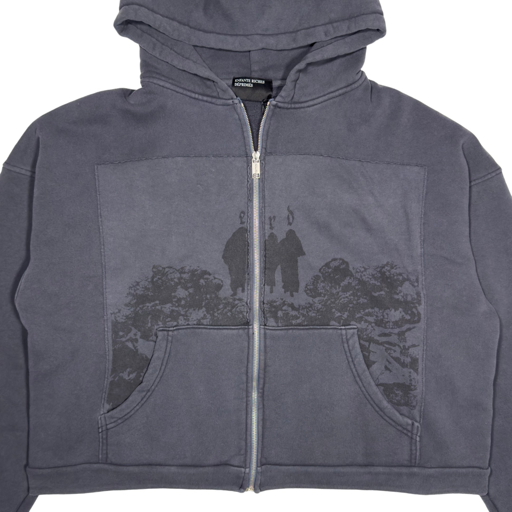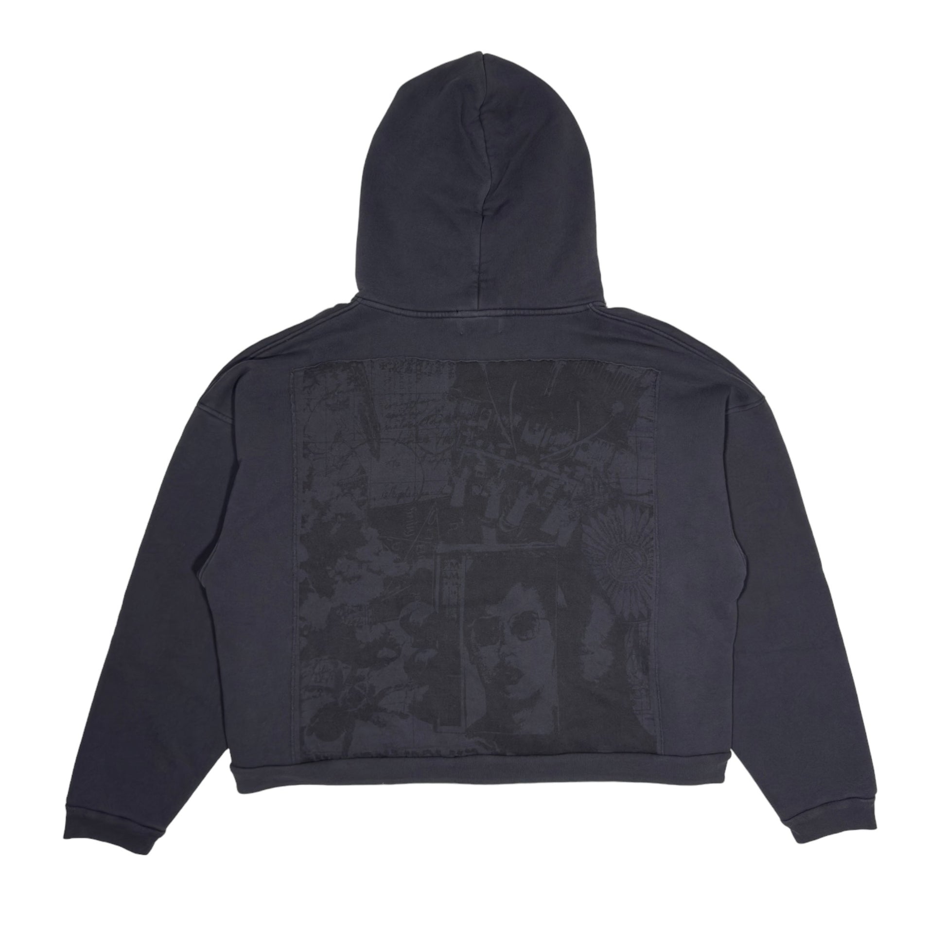 LONG-SLEEVE ZIP HOODED SWEATSHIRT MADE OF HEAVY WEIGHT BRUSHED FRENCH TERRY. BOXY, DROP-SHOULDER FIT. DOUBLE LAYER HOOD. ATCHWORK PRINTED ARTWORK THROUGHOUT. ERD-BRANDED HARDWARE. VINTAGE WASH PROCESS. MADE IN THE USA.