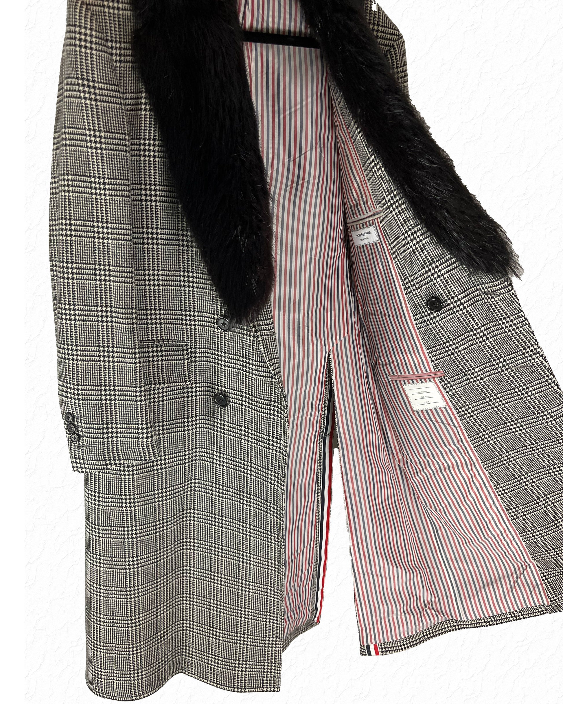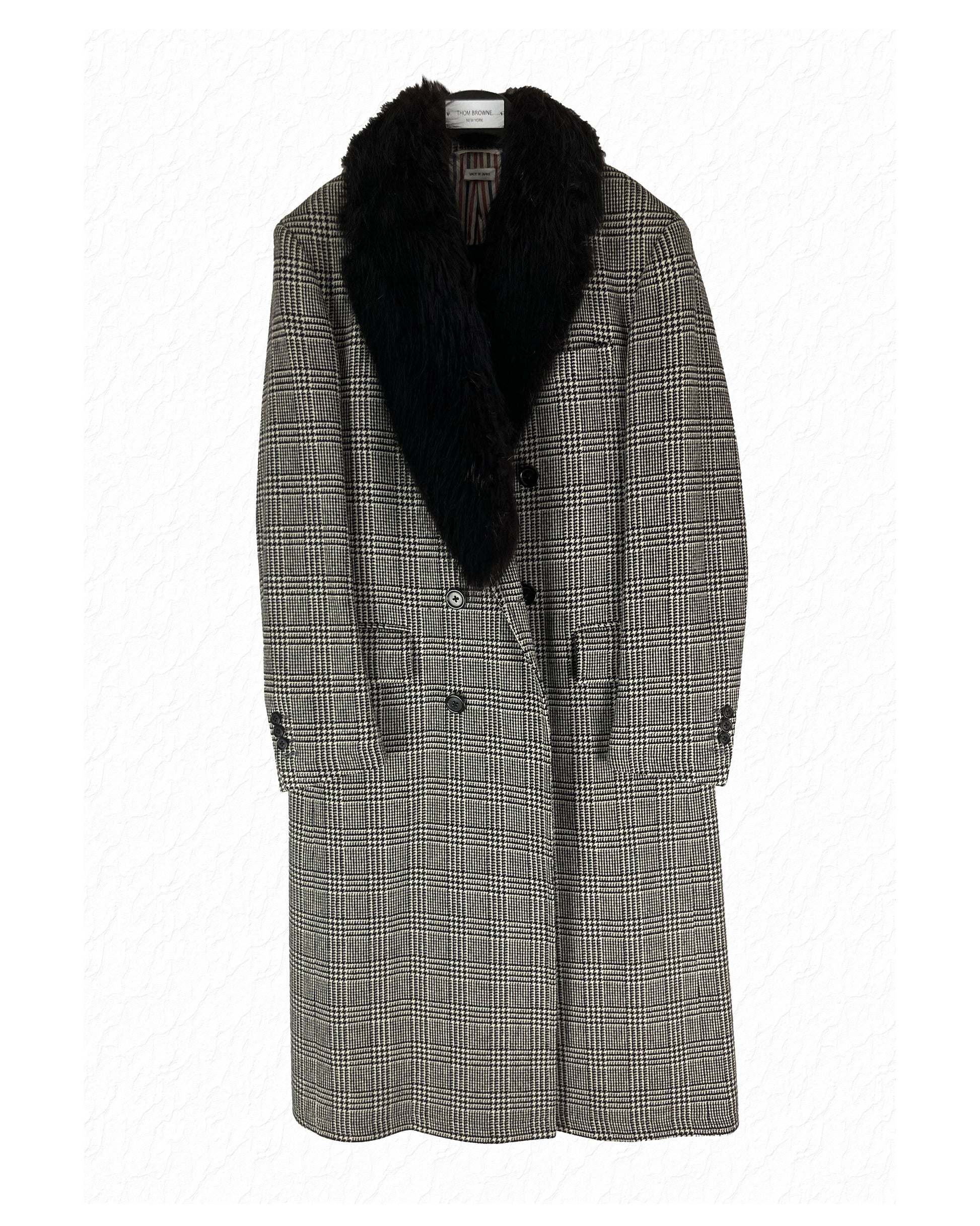 FW15 Beaver Fur Collar Wool Plaid Double Breasted Coat