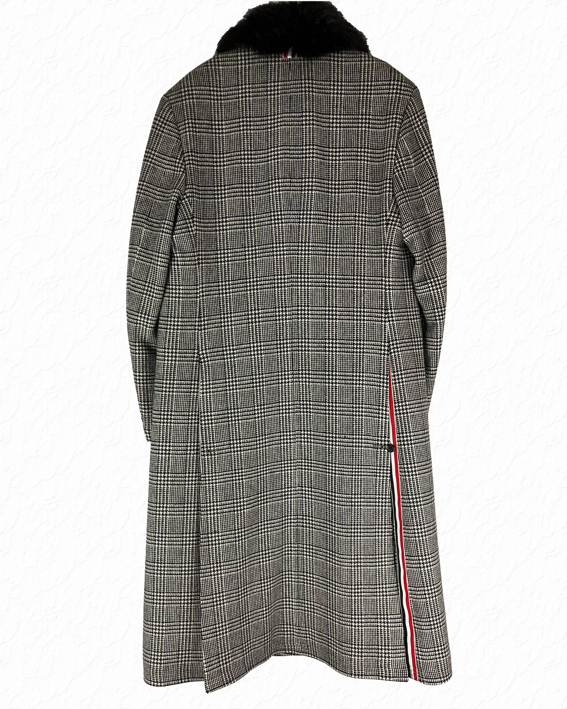 FW15 BLACK BEAVER FUR COLLAR WOOL PLAID DOUBLE BREASTED COAT