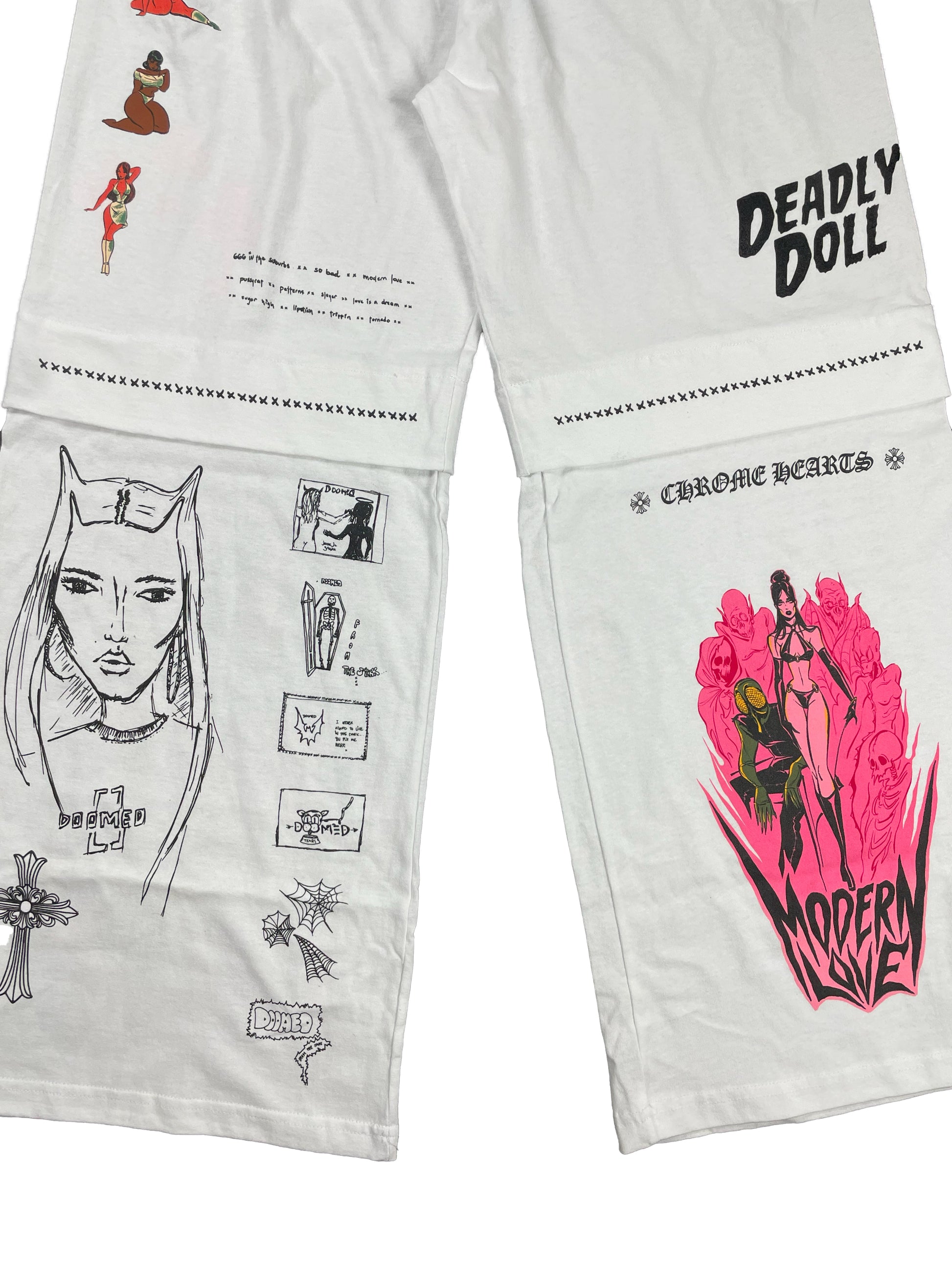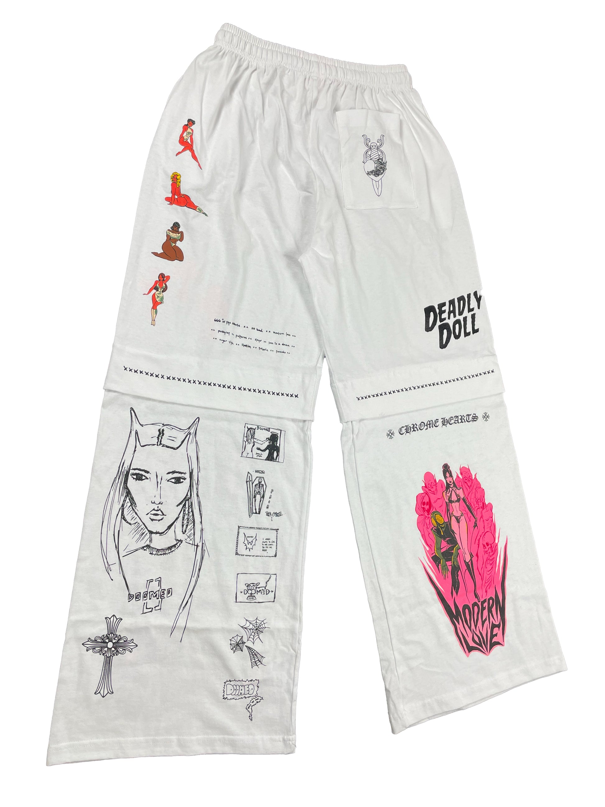 Deadly Doll Pink Cross Comic Flare Sweatpants