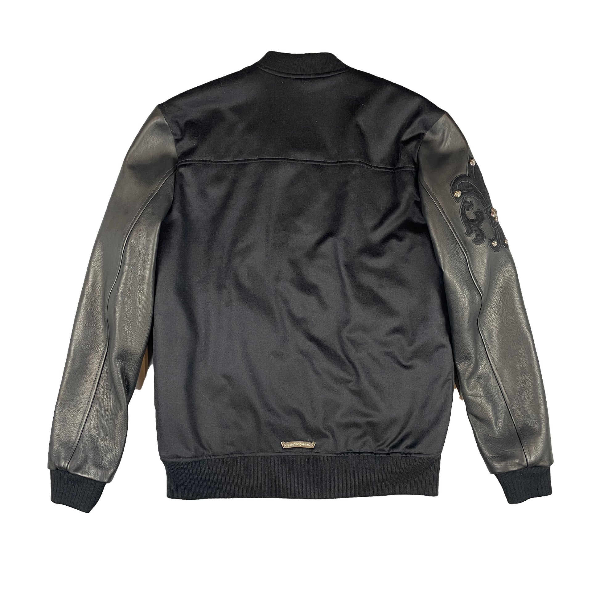 Leather & Cashmere Letterman Varsity Cross Patch Jacket