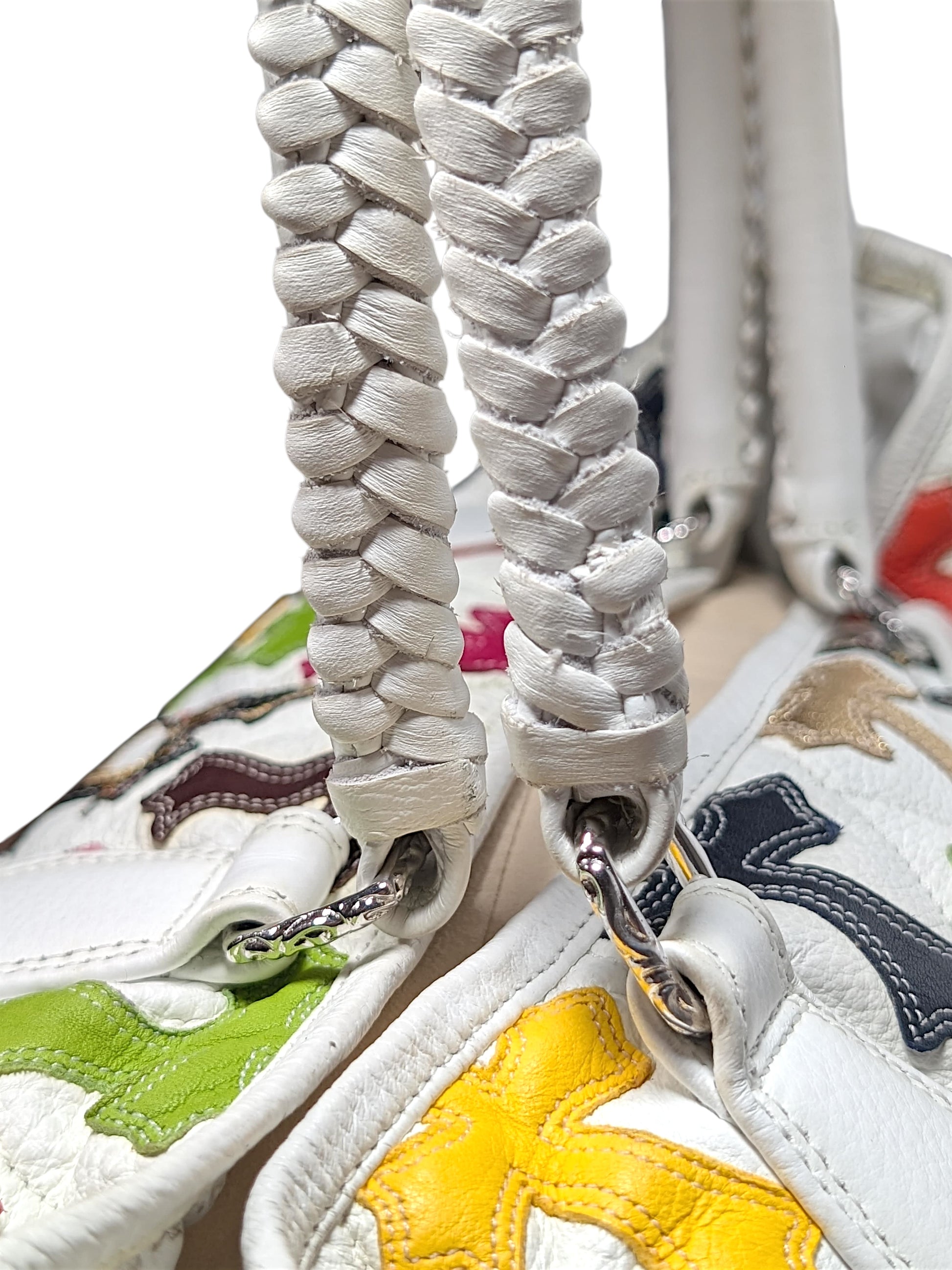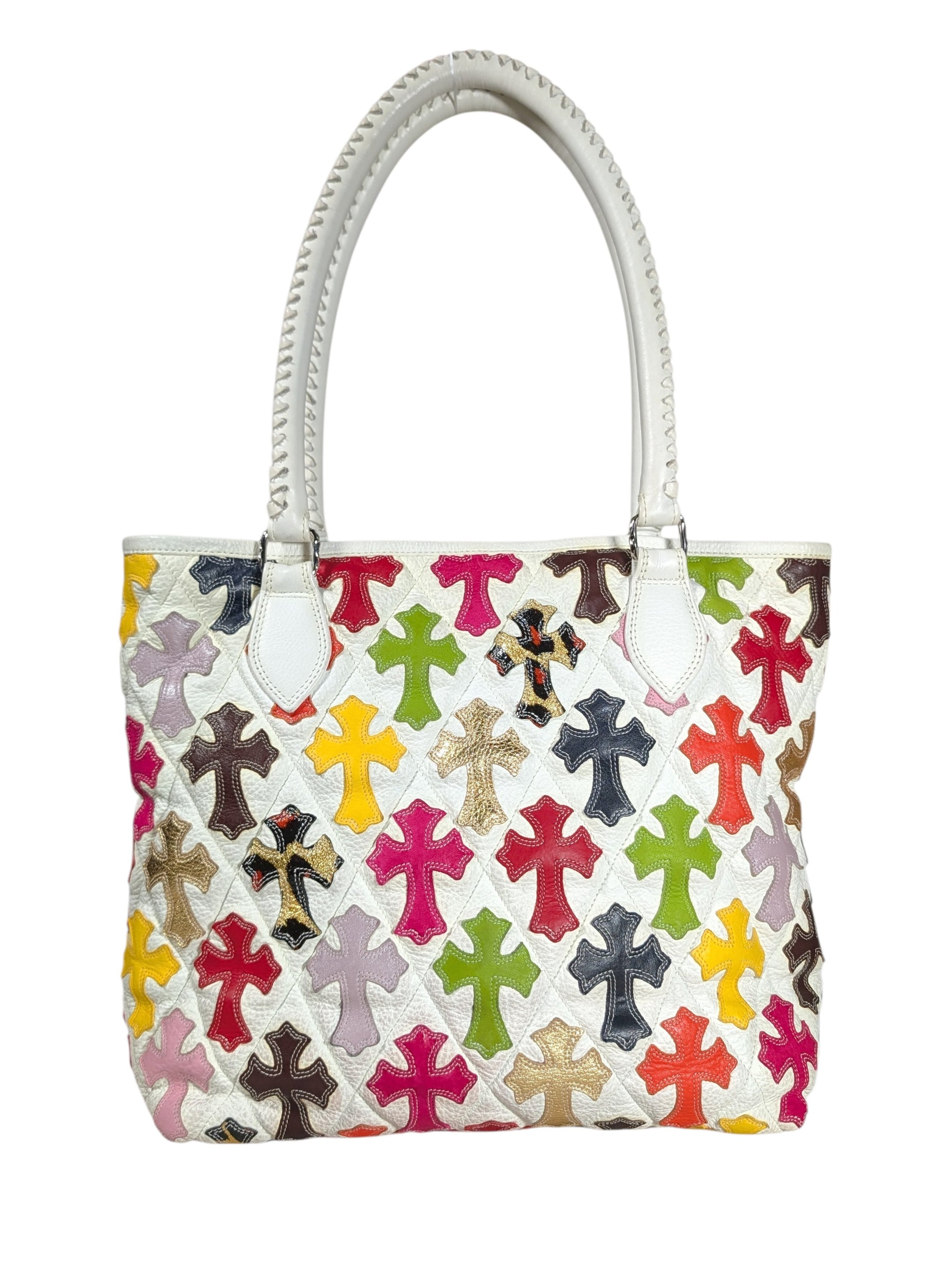 Quilted Leather Multicolor Cross Patch FS Tote Bag White