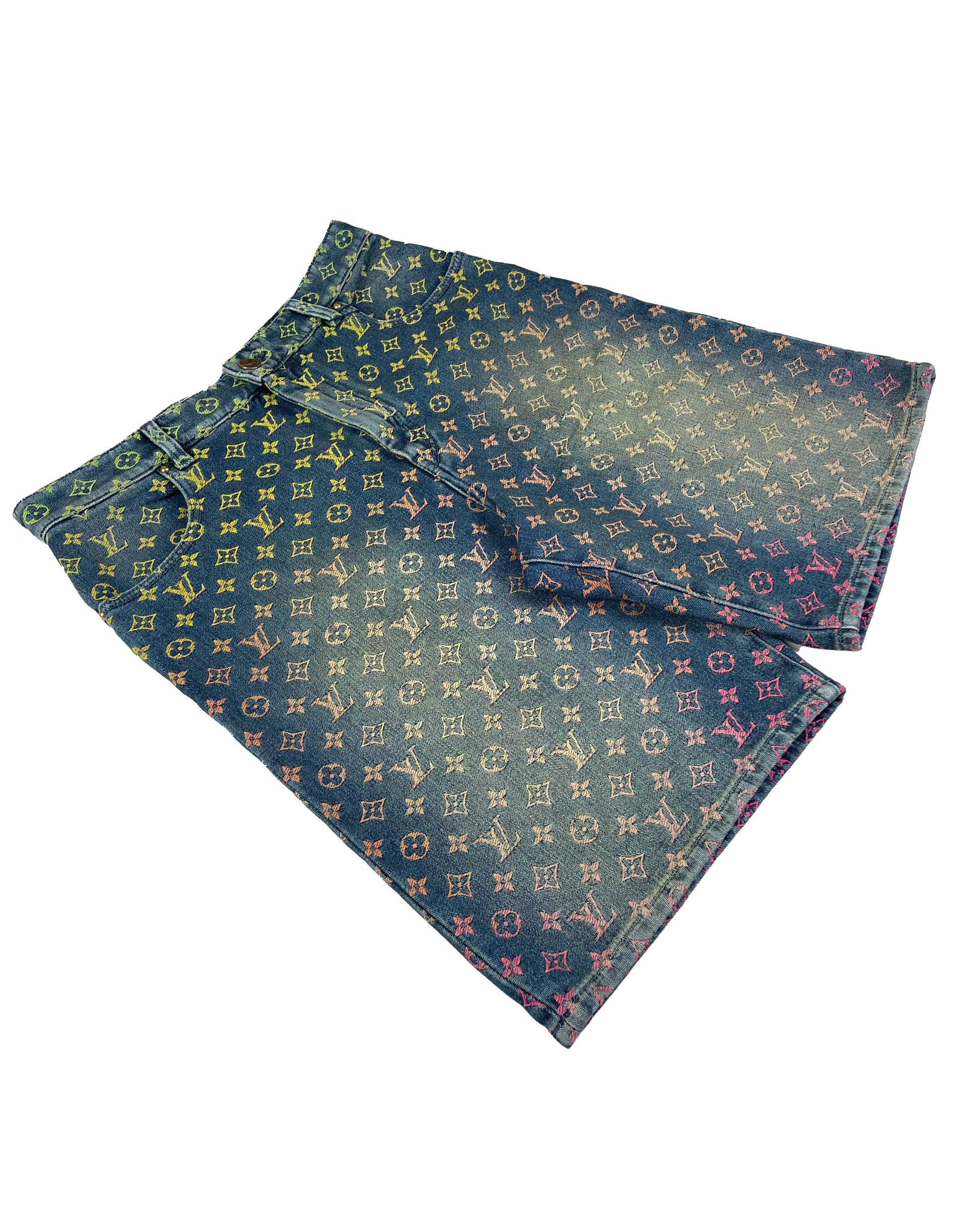 FW23 Rainbow Monogram Denim Jean Shorts