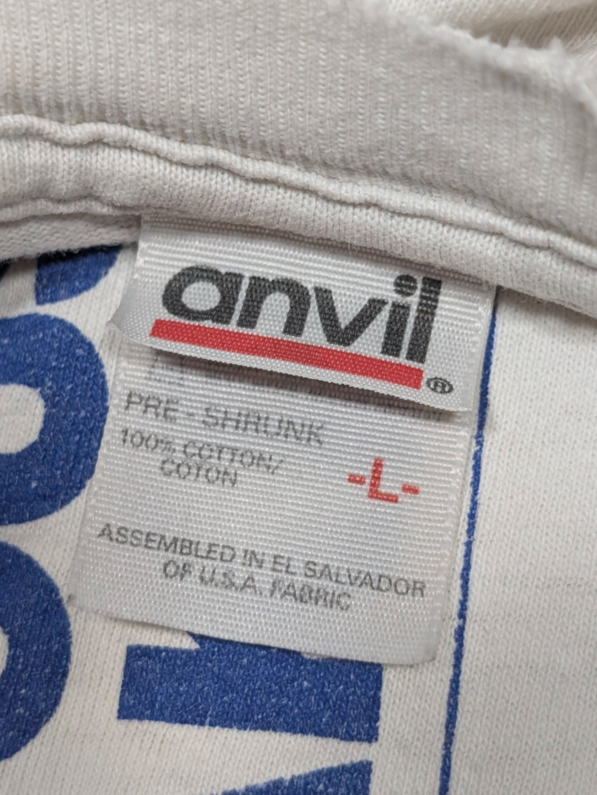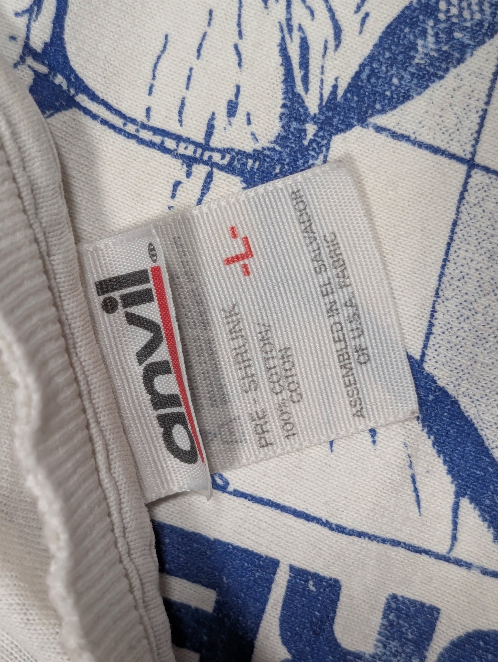 DETAILS: Vintage 1990s Black Flag “Nervous Breakdown” graphic t-shirt in white with blue front print. Anvil Tee 100% cotton of U.S.A. fabric. Natural perfect vintage heavy distressing and slight matks as shown in photos.