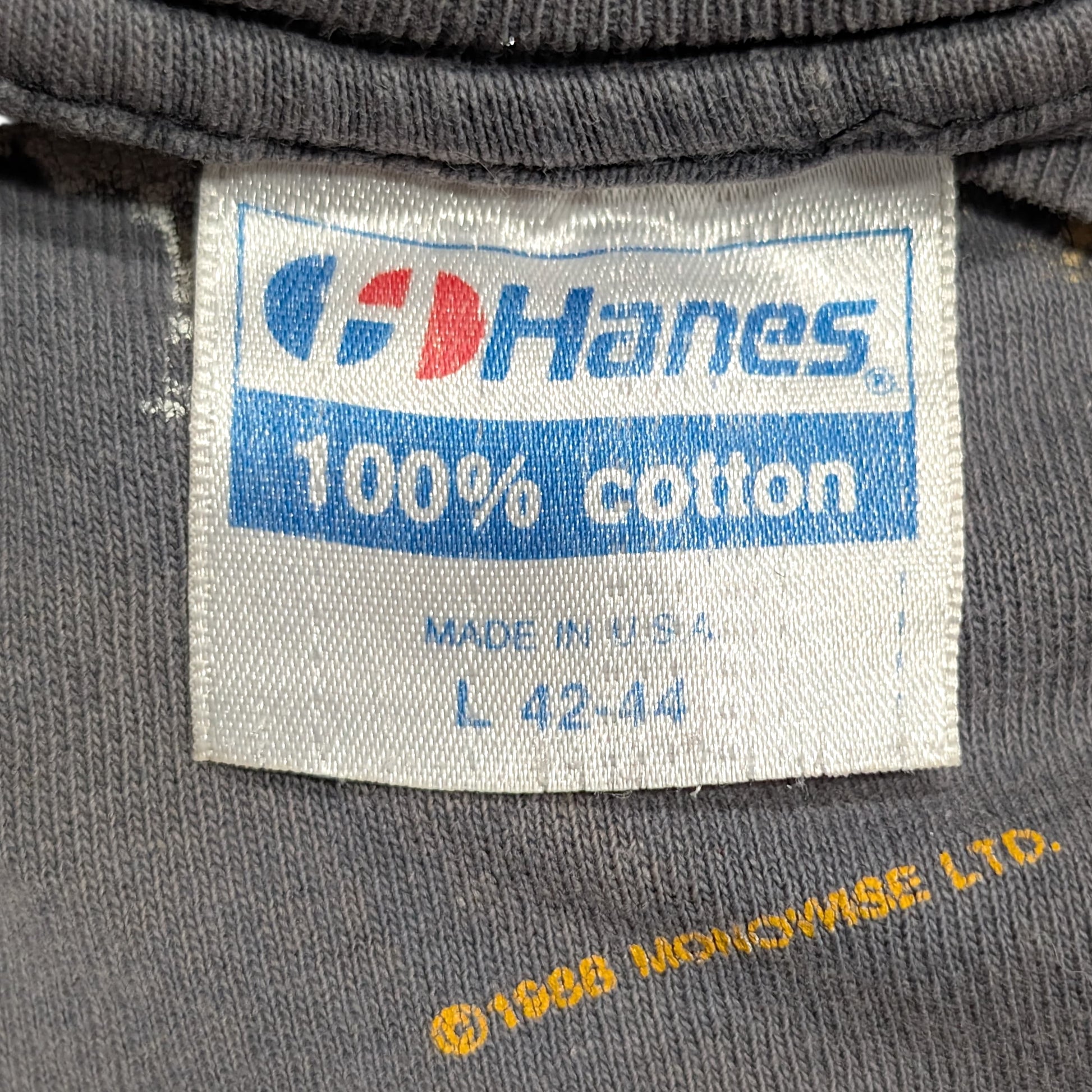 1988 Ozzy Osbourne “Ozzy Is… All of the Above” vintage T-shirt in black cotton. Faded front graphic with Ozzy portrait and back hit checklist design (“Ozzy Is…”). Single stitch, good fade and wear. Made in USA. 100% Cotton Hanes. Classic late ’80s Ozzy tour tee and highly collectible piece.
